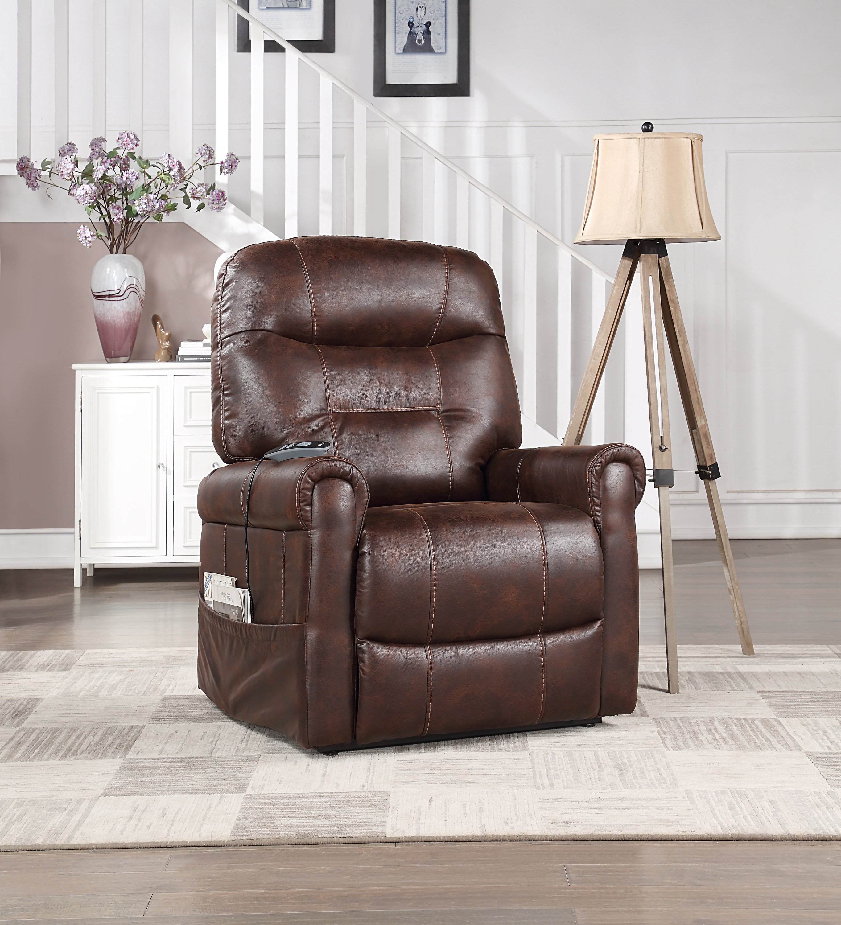 DimensionsCarton Dimensions L 33.5 x W 33.1 x H 30.3 Features-HR Foam seat cushion for comfort-Multi-operation hand-held controller operates-Power lay-flat recline mechanism with power headrest and footrest-Power Lift powered with up/down button-Heat with on/off button Product DescriptionExperience Comfort and Convenience with the Power Recliner Lift Chair. This Chair Offers Easy Ingress and Egress, along with Heat and Adjustable Massage Functions. The Sinuous Spring Construction and Steel Seat Box Ensure Plush Seating, while the High-Grade Polyester Fabric Provides Durability and Wearability. Make this Chair the Most Treasured Spot in Your Room.